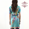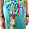Abito firmato Emilio Pucci dalla linea aderente e femminile, in abbinato con la cintura in tessuto coordinato, decorata con dettagli pendenti, che permette di accentuare il punto vita.
