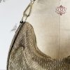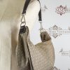 Dotata di unico manico in pelle marrone scuro, che permette di portarla sia a spalla che a tracolla.