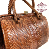Borsetta a mano vintage in vera pelle di pitone di un caldo color miele con sfumature più chiare e scure.