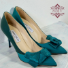 Décolleté Jimmy Choo con tacco a spillo, decorate con un fiocco sulla punta affusolata.