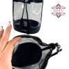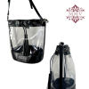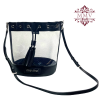 Corpo in PVC trasparente e profili, base e coulisse in pelle nera.