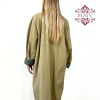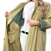 Le maniche lunghe possono essere rigirate per rivelare la fantasia floreale della fodera interna, creando un contrasto elegante con il verde militare del trench.